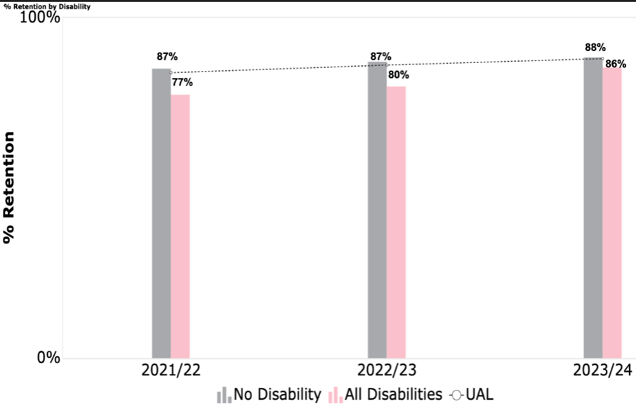 Fig.8. UAL retention by disability (UAL, n.d.)